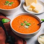 - Season and serve: Taste the soup and adjust salt and pepper as desired. Serve hot, optionally garnished with grated parmesan and freshly cracked black pepper. Enjoy your nutritious high-protein tomato soup!