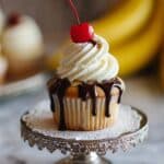 Enjoy the delightful taste of a classic banana split in cupcake form with these Homemade Banana Split Cupcakes. Moist banana-infused cupcakes are topped with creamy frosting, drizzled with rich melted chocolate, sprinkled with crunchy nuts, and crowned with a maraschino cherry, creating a perfect handheld dessert that captures all the flavors of a traditional banana split.
