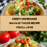 This Homemade Navajo Taco recipe features crispy, golden-fried bread topped with flavorful chili beans, seasoned taco meat, and fresh vegetables. A beloved Native American dish, it’s perfect for a hearty meal that combines the satisfying crunch of fry bread with classic taco fixings all made from scratch.