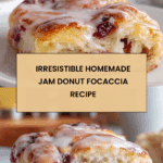 Experience a delightful twist on classic focaccia with this Homemade Jam Donut Focaccia. Soft, airy bread pockets filled generously with raspberry preserves are baked to golden perfection then topped with a sweet, smooth glaze, delivering all the comfort and sweetness of a jam donut in a luscious focaccia form.
