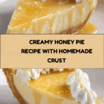 This Honey Pie recipe features a smooth, creamy custard filling sweetened with pure honey and baked in a flaky homemade or store-bought pie crust. The pie boasts a delicate blend of honey and both brown and granulated sugars, creating a naturally sweet and slightly caramelized flavor. Topped with optional whipped cream and honey drizzle, this dessert is rich yet light, perfect for honey lovers seeking a unique twist on classic custard pie.