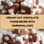 Keywords: hot chocolate fudge, chocolate fudge, no bake fudge, easy fudge recipe, marshmallow fudge, holiday dessert