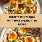 Jammy eggs are a delightful dish featuring soft-boiled eggs with a rich, spicy chili butter and a tangy yogurt base. This recipe brings together vibrant flavors and creamy textures, perfect for a comforting breakfast or a light meal.
