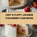 This Japanese Strawberry Cake is a light and airy sponge cake layered with whipped cream and fresh macerated strawberries. The recipe features a moist cake base baked in a water bath for tenderness, stabilized or regular whipped cream for smooth texture, and sweet syrup brushed between layers to enhance flavor. The cake is simple yet elegant, perfect for celebrations or a delightful dessert.