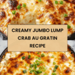 This Jumbo Lump Crab Au Gratin recipe features tender crab meat baked in a rich, creamy cheese sauce topped with a golden, crispy breadcrumb crust. Perfect as an elegant appetizer or a decadent main dish, this dish combines classic flavors like Dijon mustard and Old Bay seasoning for a delightful seafood treat.
