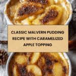 Malvern Pudding is a classic English dessert featuring tender baked apples submerged in a creamy custard base, finished with a delightful caramelized sugar topping. This comforting dish blends the tartness of apples with a rich, velvety custard, making it perfect for cozy evenings or special occasions.