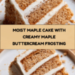 Keywords: maple cake, maple buttercream frosting, layered cake, cinnamon cake, moist cake recipe, fall dessert, maple syrup dessert