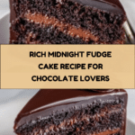 Midnight Fudge Cake is a rich, moist chocolate cake that satisfies any chocolate lover’s cravings. With its deep cocoa flavor and silky frosting, this dessert is perfect for celebrations or a special treat.