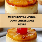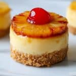 These Mini Pineapple Upside-Down Cheesecakes are a delightful blend of creamy cheesecake, tropical pineapple, and a crunchy graham cracker crust. Perfectly portioned for individual servings, they make a charming dessert for any occasion.