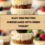 These Mini Protein Cheesecakes are a delightful, high-protein dessert option featuring a buttery graham cracker crust and a creamy filling made with cream cheese, Greek yogurt, and eggs. Lightly sweetened and infused with vanilla and lemon, these individual cheesecakes are baked to perfection and chilled for a refreshing finish, making for a perfect guilt-free treat.