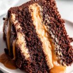 13. Step 13: Frost the entire cake with the remaining frosting, slice, and enjoy your decadent chocolate caramel cake!