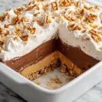 This no-bake peanut butter chocolate pretzel pie combines salty, sweet, and creamy flavors in one irresistible dessert. With a crunchy pretzel crust and layers of peanut butter cream and chocolate pudding, it’s perfect for warm days or when you want a fuss-free treat.