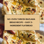 This No-Oven Turkish Bread, known as Bazlama, is a soft and fluffy flatbread made with just a few simple ingredients and cooked on the stovetop. Perfect for a quick bread fix without the need for an oven, it features a tender crumb with a slightly chewy texture and a buttery finish, ideal for pairing with dips, spreads, or enjoying on its own.
