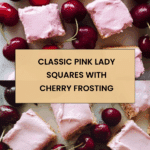 These Old Fashioned Pink Lady Squares are a nostalgic dessert featuring a buttery graham cracker crust topped with a rich coconut and condensed milk layer, finished with a luscious cherry-flavored icing. This treat blends sweet, tropical flavors with a classic pink frosting, making it perfect for a retro dessert table or any festive occasion.