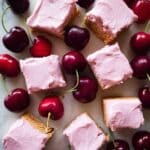 - Frost and Chill: Once the bars have cooled completely, spread the cherry icing evenly over the top. Refrigerate the squares until the icing hardens, about 1 hour.