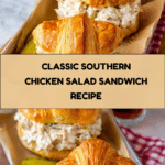 This Old Southern Chicken Salad Sandwich is a classic comfort food featuring tender shredded chicken breast mixed with crunchy celery, chopped hard-boiled eggs, and a creamy, tangy dressing made with mayonnaise, sweet pickle relish, and a hint of pickle juice. Served on your choice of bread or croissants, it makes a deliciously satisfying sandwich perfect for lunch or a light dinner.