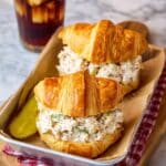 This Old Southern Chicken Salad Sandwich is a classic comfort food featuring tender shredded chicken breast mixed with crunchy celery, chopped hard-boiled eggs, and a creamy, tangy dressing made with mayonnaise, sweet pickle relish, and a hint of pickle juice. Served on your choice of bread or croissants, it makes a deliciously satisfying sandwich perfect for lunch or a light dinner.