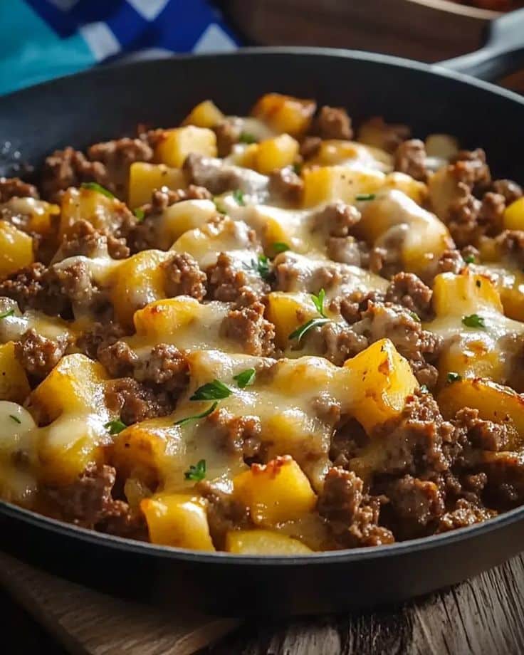 One-Pan Cheesy Meat & Potato Skillet Recipe