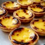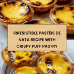 Keywords: Pastéis de Nata, Portuguese custard tarts, egg custard tart, puff pastry dessert, traditional Portuguese recipe, baked custard tart