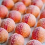 Delightfully soft and creamy Peach Cookies featuring a tender dough filled with a luscious dulce de leche and apricot cream cheese filling. Finished with a colorful, crystallized sugar coating for an eye-catching treat perfect for any occasion.