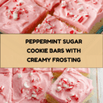 Keywords: peppermint sugar cookie bars, peppermint bars, holiday cookie bars, peppermint frosting, sugar cookie bars