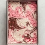 - Layer and Swirl the Batter: Pour the remaining plain batter into the bottom of the prepared pan. Drop tablespoons of the chocolate and strawberry batters randomly over the top of the plain batter. Use a table knife to gently pull through the batter to create a swirled, marbled effect.