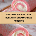 A delightful and visually stunning Pink Velvet Cake Roll featuring a soft, tender cake with a hint of almond, rolled with creamy vanilla cream cheese frosting. Perfect for festive occasions or an elegant dessert treat.