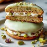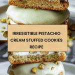 Pistachio Cream Stuffed Cookies offer a delightful combination of tender, nutty cookie dough filled with a rich pistachio cream. Topped with a sweet white chocolate glaze and crunchy pistachio garnish, these cookies make a perfect treat for any occasion.