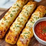 These Pizza Hut Cheese Sticks are soft, buttery breadsticks loaded with melted mozzarella and parmesan cheese, seasoned with garlic and oregano, and served warm with zesty marinara sauce for dipping. Perfect for a comforting appetizer or snack, they feature a tender yeast dough baked to golden perfection.