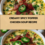 This Popper Chicken Soup is a creamy, flavorful dish inspired by the beloved jalapeño popper appetizer. Made with tender shredded chicken, spicy jalapeños, cream cheese, and cheddar, this hearty soup combines a perfect balance of heat and creaminess. It’s easy to prepare on the stovetop and perfect for a cozy meal.