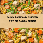 This Quick Chicken Pot Pie Pasta is a comforting and creamy one-pan meal that combines tender chicken, assorted vegetables, and egg noodles in a rich mushroom and chicken soup sauce. Ready in under 30 minutes, it’s a perfect weeknight dinner that offers all the flavors of classic chicken pot pie without the fuss of making a crust.