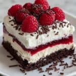 Keywords: Raspberry Chocolate Lasagna, no-bake dessert, layered dessert, Oreo crust, chocolate pudding, raspberry cream cheese layer, Cool Whip dessert