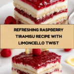 This delicious raspberry tiramisu is a vibrant twist on the classic Italian dessert, featuring layers of mascarpone cream, raspberry jam, and syrup-soaked ladyfinger cookies. The fresh and tart raspberry flavors combined with the creamy mascarpone filling and subtle notes of lemon and vanilla make this dessert refreshing yet indulgent, perfect for special occasions or anytime you crave a fruity, elegant treat.