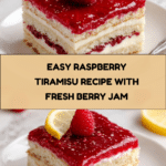This Raspberry Tiramisu is a refreshing twist on the classic Italian dessert, combining the bright flavors of raspberries with rich mascarpone cream. It’s a perfect no-bake treat that impresses with layers of fruity jam, delicate ladyfingers, and creamy filling.