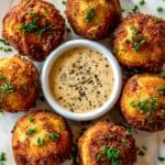 These Reuben Balls are a delicious appetizer inspired by the classic Reuben sandwich. Packed with corned beef, sauerkraut, Swiss cheese, and a tangy Dijon mustard blend, they are breaded and fried to golden perfection. Served with a smoky, creamy dipping sauce, they make a perfect party snack or game day treat.