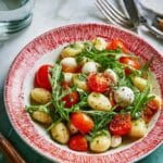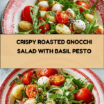 This Roasted Gnocchi Salad combines crispy, golden gnocchi with fresh cherry tomatoes, mozzarella, and peppery arugula. Tossed with basil pesto and topped with toasted pine nuts, it’s a vibrant and satisfying dish perfect for lunch or a light dinner.