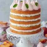 Keywords: Russian peach cake, layered cake, sponge cake, peach preserves, whipped cream, zefir, marshmallow cake, summer dessert
