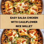 This Salsa Chicken and Cauliflower Rice Skillet is a flavorful, low-carb meal perfect for busy weeknights. Packed with spices, fresh ingredients, and melted cheese, it’s a satisfying dish that’s both healthy and easy to prepare.