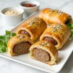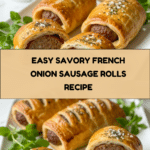 Savory French Onion Sausage Rolls combine flavorful pork mince with a classic French onion soup mix, wrapped in flaky puff pastry and baked to golden perfection. These rolls are perfect as a hearty snack, appetizer, or party finger food, enhanced with cheese, fresh herbs, and a hint of spice for extra depth.