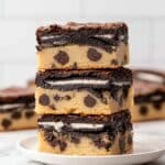 Keywords: slutty brownies, layered brownies, chocolate chip cookie, Oreo brownies, fudgy brownies, decadent dessert