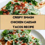 These Smash Chicken Caesar Tacos combine the crispiness of pan-seared ground chicken with the fresh flavors of Caesar salad. Quick to prepare and bursting with savory goodness, they make a perfect weeknight dinner or casual gathering treat.