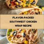 This Southwest Chicken Wrap is a vibrant and flavorful meal perfect for lunch or dinner. Tender marinated chicken cooked with smoky chipotle and spices is combined with sautéed bell peppers, jalapeño, and onions, then wrapped up with rice, black beans, corn, cotija cheese, and a creamy, tangy chipotle-lime sauce. Ready in under an hour, this wrap delivers a balanced blend of smoky, spicy, and fresh flavors in every bite.