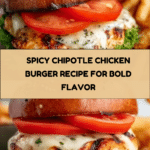 This Spicy Chipotle Chicken Burger combines ground chicken with smoky chipotle peppers and flavorful spices, creating a juicy, spicy, and satisfying burger. Served with a creamy chipotle mayo, fresh lettuce, tomatoes, onions, and optional pepper jack cheese and pickled jalapeños, it’s a perfect balance of heat and flavor for burger lovers looking for a kick.