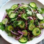 PrintSpicy Korean Ground Beef with Cucumber Salad Recipe