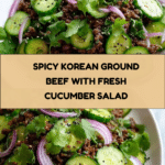 This Spicy Korean Ground Beef with Cucumber Salad is a quick and flavorful dish that brings bold Korean flavors to your dinner table. The savory and spicy beef pairs perfectly with the refreshing, tangy cucumber salad, making it a balanced and satisfying meal.