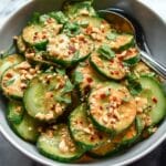 This refreshing cucumber salad is tossed in a rich, spicy peanut sauce that brings a vibrant punch to every bite. Combining crunchy cucumbers with a flavorful blend of soy, honey, and chili flakes, it’s a perfect side dish for warm days or anytime you want a quick, tasty salad.