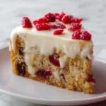 Enjoy the festive flavors of Starbucks’ famous Cranberry Bliss Bars with this easy-to-make copycat recipe. Featuring a moist and spiced cake base studded with tart dried cranberries and white chocolate chunks, topped with a tangy cream cheese frosting, extra cranberries, and a delicate white chocolate drizzle, these bars are perfect for holiday gatherings or anytime you crave a sweet, fruity treat.