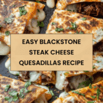 Delicious and savory Steak Cheese Quesadillas grilled to perfection on a Blackstone flat top. Thinly sliced flank or sirloin steak is seasoned and seared alongside sautéed bell peppers and onions, then combined with a blend of Monterey Jack and cheddar cheese inside warm flour tortillas. These quesadillas are crispy on the outside, melty and flavorful on the inside, perfect as a satisfying lunch or dinner.