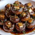 Steakhouse Garlic Butter Mushrooms are a savory side dish featuring tender sautéed white button mushrooms cooked in a rich garlic butter sauce with a blend of herbs and spices. Perfectly seasoned with Worcestershire and soy sauces, these mushrooms boast a glossy finish and fresh herb garnish, ideal for complementing steak or as a flavorful appetizer.