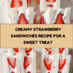 Strawberry Cream Sandwiches are a delightful no-cook dessert featuring fresh strawberries, whipped cream cheese filling, and soft white bread. These refreshing and creamy sandwiches are perfect for an elegant snack or a sweet treat on a warm day.